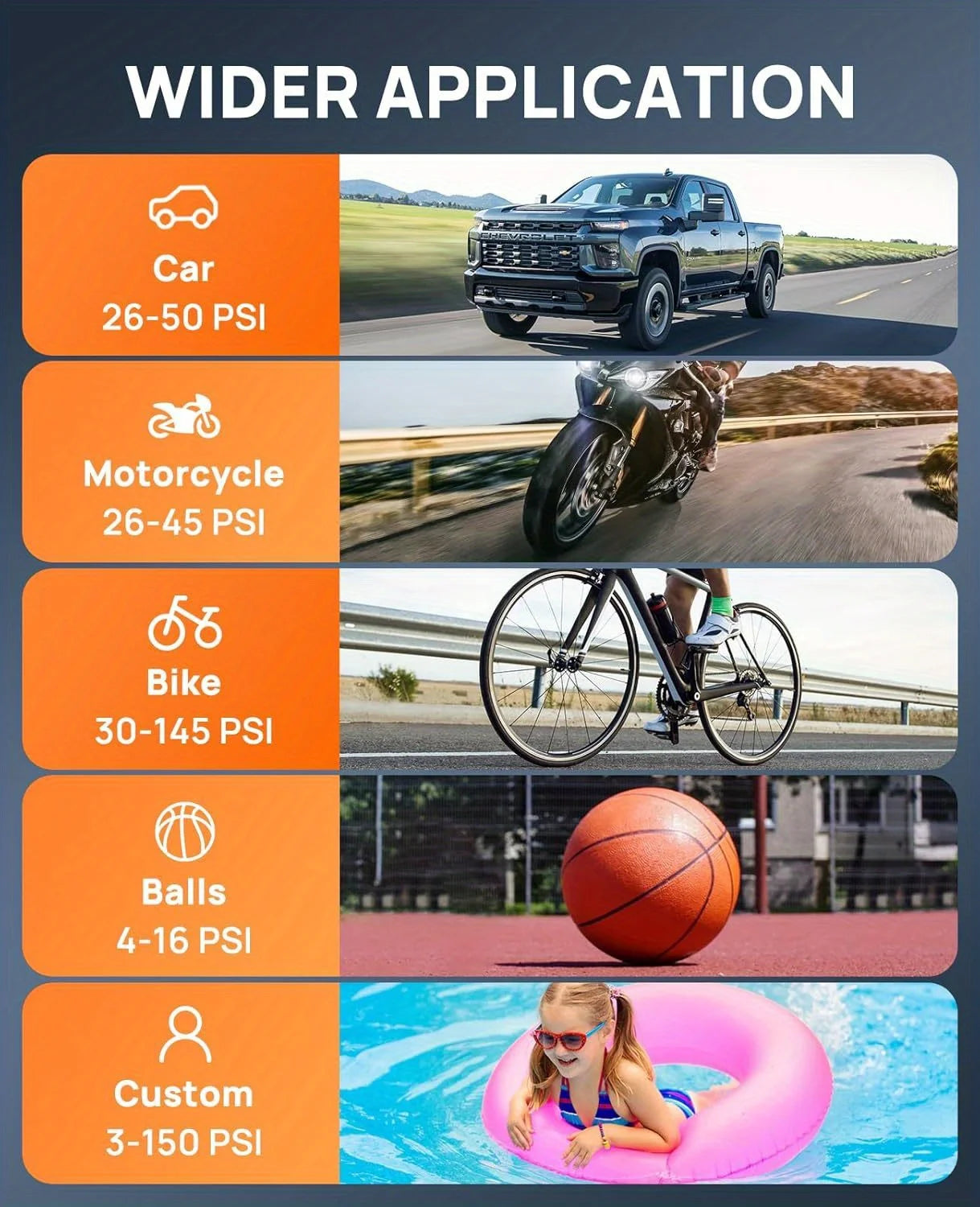 Powerful Compressor — inflates up to 150 psi, suitable for various needs