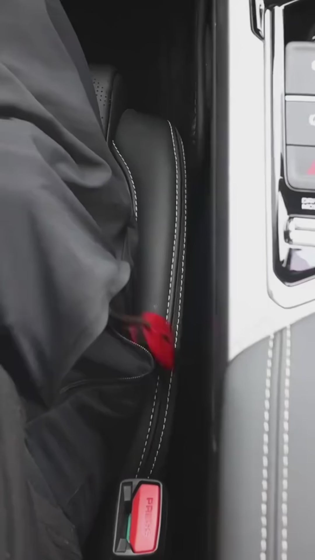 Convenience and Safety – special opening does not block the seat belt buckle, allowing full use of the seat belt without restrictions