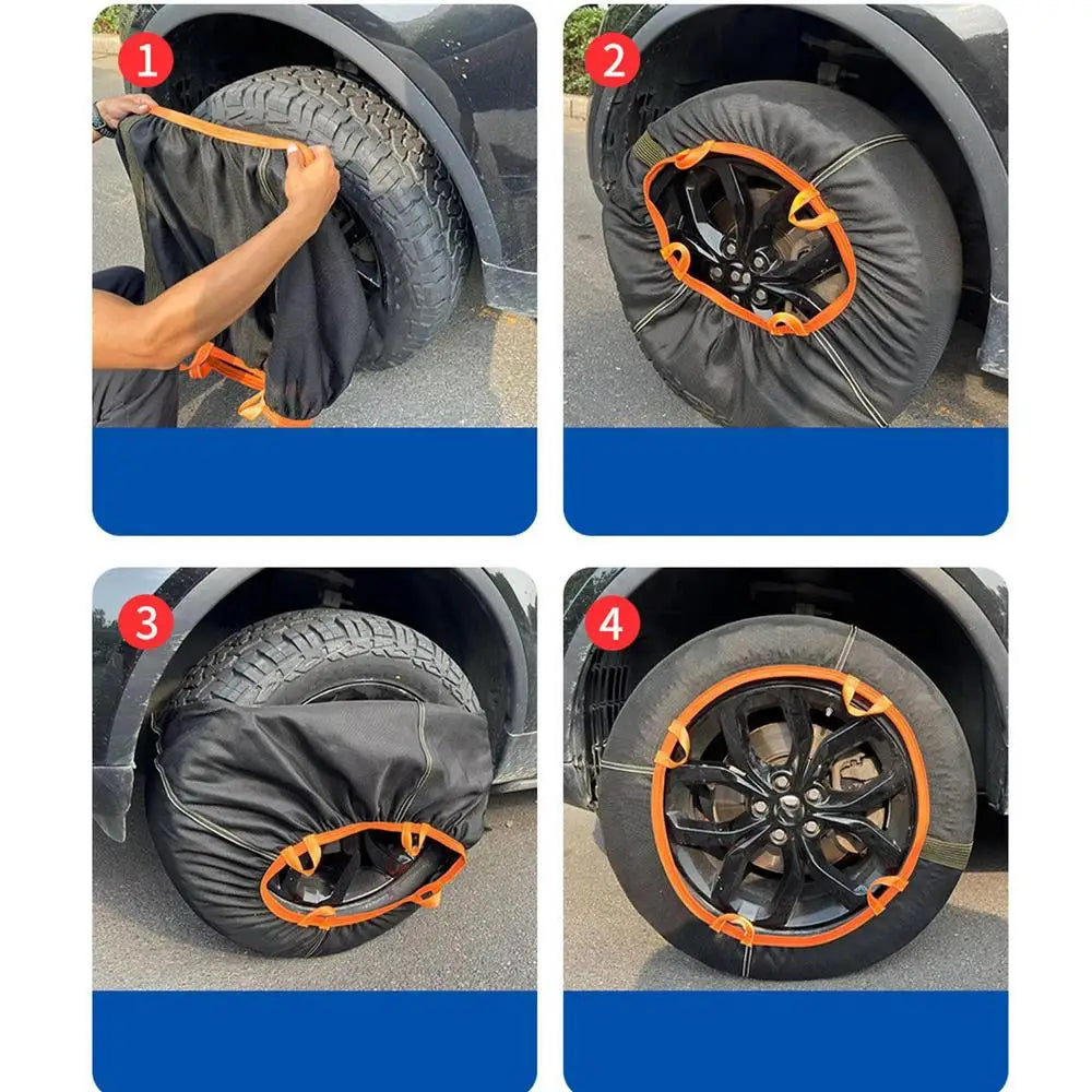 Anti-slip snow tire socks — durable, elastic, and reusable. Easy to install on SUVs, sedans, and cars, providing safe, smooth, and reliable driving on snow and ice.