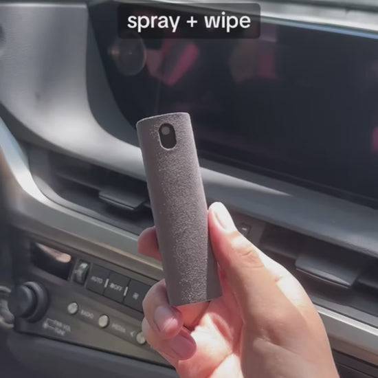 2-in-1 Design — compact spray and lipstick-sized cloth, easy to carry in a bag and use on the go