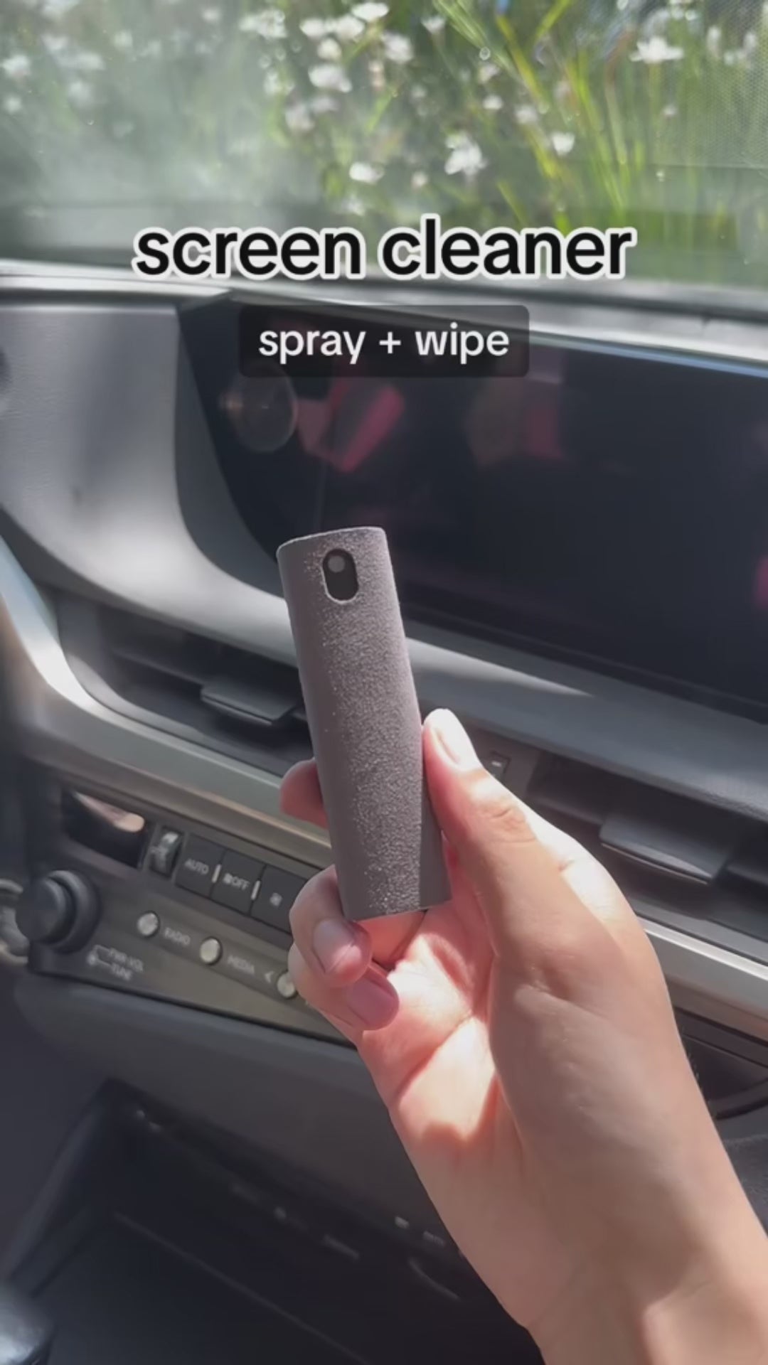 2-in-1 phone screen cleaner — compact refillable spray and soft microfiber cloth, safe for all LCD/LED screens, reusable, portable, removes dust, smudges, fingerprints, and streaks.